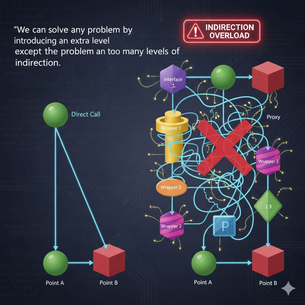 We can solve any problem by introducing an extra level of indirection, except for the problem of too many levels of indirection.
